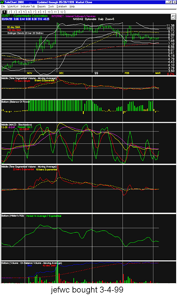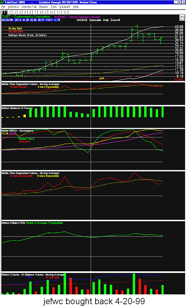Tab 3, Top configured, but pushed up out of sight. Mid TSV 22 day EXP, 10 day EMA. Bot, RSI 14 day 7 day EMA. Explained about CUST in Previous post. Will find and advise of post #.
